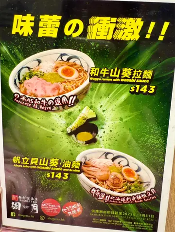 本來想去『碌鈴』,點知排晒隊,結果變咗揾食,一出嚟見到呢間~麵鮮醬油房周月,又「米豬蓮」,又拉麵,為食嘅我~唔係好肚餓都要試吓。叫咗~辣味噌拉麵,同埋~和牛拉麵。另外加咗碟~紫菜,呢碟紫菜有啲特別,係要加埋落碗湯麵一齊食至過癮好味。和牛拉麵($143),價錢係有啲高,但由湯底,和牛,以至啲脆筍,都相當好水準,牛肉份量其實唔小,二塊大加二三塊小的,夠食有餘(總扺過上次二片雞肉),牛肉入口咬落去,牛嘅嫩度牛嘅油脂同牛味,雖然薄切,但到足以滿足到我,順帶一提,以前食日本拉麵都會經常有「筍」呢樣野,依家拉麵店真係小見咗好多。女友食呢個,辣味噌拉麵~入面燒果個日本黑豚肉,真心不錯,辣味噌湯夠味,唔夠辣,女友加埋啲辣椒粉~完滿。攞咗塊黑豚肉試,你哋睇吓幾有層次?!同埋都有相當厚度。紫菜幾得意,撈埋落麵食,真係又另一番口味。埋單三佰有找。回頭度~9/10真心好食,真係食得好開心,好耐未試過有咁嘅感覺,水準絶對對得住個價錢,期望佢哋保持水準之外,再多啲選擇!以上純粹個人食後分享,絶對沒有收受任何利益或優惠。對於本人所有嘅言辭,一律承擔所有責任。…查看更多