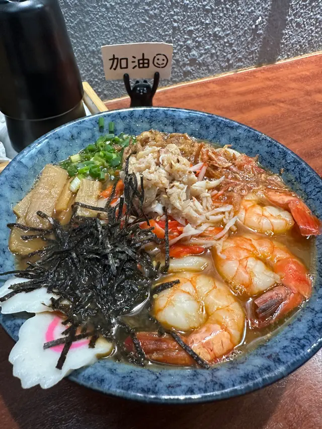 湯麵味噌湯底濃郁 虎蝦彈牙蟹肉鮮美 鳴門卷Q彈 筍片清脆紫菜絲芝麻添香 炸乾蔥香口麵條順滑 一樣熱辣辣🫶🏻另外沙律清新 份量適中成個夠哂滿足又滋味❤️…查看更多