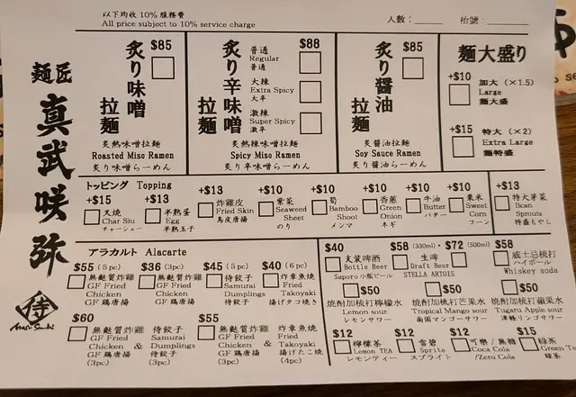 麺匠 真武咲弥 (中環) 網址: https://s.openrice.com/QrbS0GJy500 地址: 香港中環威靈頓街112-114號新威大廈地下C號舖 電話: +852 23319372