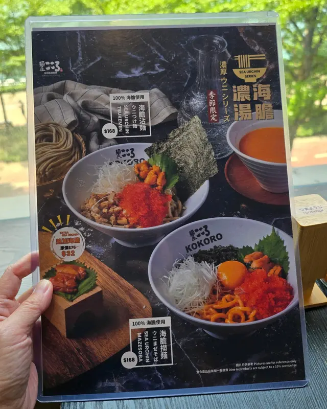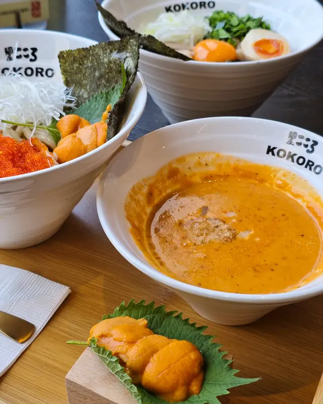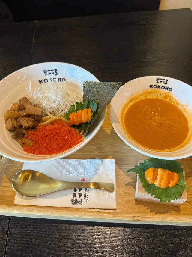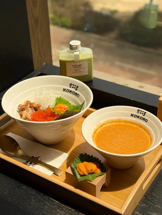 日本東京過江龍KOKORO期間限定🇯🇵海膽濃湯系列,有海膽撈麵及海膽沾麵兩款💛嚴選100%日本新鮮空運的海膽✈️味道超濃郁超creamy🌟海膽沾麵海膽味道香濃,散發出奶油般的滑順質感😍自家製太麵富有彈性,帶點麥香🌾掛汁力超强,每條都吸附著濃稠的海膽醬汁🤤配上巨量飛魚子,口感輕脆❣️伴上肥瘦適中的日式叉燒、細碎的紫菜片,新鮮切絲的蔥花、呈橙黃色的蛋黃作點綴,味道層次十分豐富🌟明太子忌廉撈麵配料鋪滿麵面,誠意十足。明太子份量慷慨,與忌廉一起拌勻後🧡緊緊依附在柔韌的麵條上,滑順中帶著一絲細膩的鹹香🐷日式叉燒油脂均衡,增添肉香;翠綠生菜爽脆清新🥬蔥花提香不搶味;紫菜帶來淡淡海藻氣息。再以唐辛子絲與生蒜點醒味蕾🧄整體濃而不膩,既令人滿足又回味無窮🌟Matcha Latte細膩的奶泡融入濃濃的抹茶基底🍵令抹茶的微苦與奶香完美交織,帶來濃郁卻不膩的口感,尾韻留下一絲甘甜🌟Hojicha Latte 茶香與牛奶的比例平衡得宜,既保留了焙茶本身的烘焙感🫖又讓奶香柔和地中和了茶韻的苦澀🤎甜度方面控制得恰好,不會過於膩口,反而讓焙茶的回甘更顯突出…查看更多