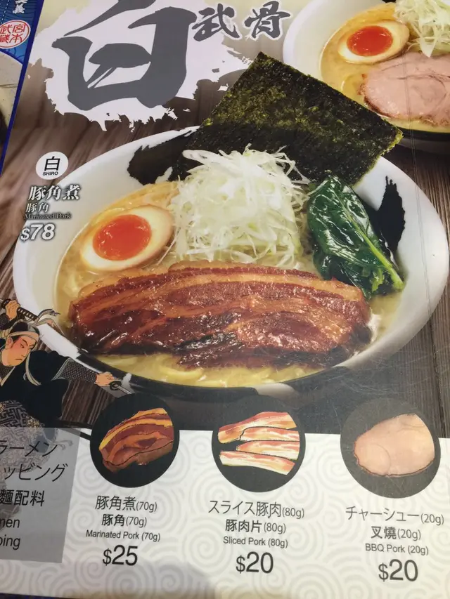 SoupI ordered the 'white' one, which is the original pork bone flavor. It's not thick but not too thin either, good amount of fat in the stock but doesn't stinkNoodleGood texture, not overcooked nor undercookedMeatquite tough, lean meat mostly marbled with some fat in between. Flavor wise nothing specialOverall RatingTRYit's a satisfying bowl of Ramen. Price is alright given that the it is located in the mall. …查看更多