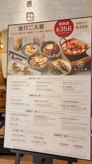 呢間餐廳位於尖沙咀,連住尖沙咀地鐵站D3出口好方便!裝潢走文青風格,木系桌椅搭配暖色燈光,氛圍輕鬆~ 今次我坐卡位,拉埋布簾即刻變咗個小包廂,私隱度up ! 好適合朋友或情侶小聚🥰今次我叫咗佢嘅「推介二人餐」,都幾抵食~人均只喺百幾蚊,我同朋友食都食到好飽呢~⭐️推介二人餐⭐️💰358👉🏻夜市小食:麻吉 Griddle(牛肉夾饃)🧇餐廳最新推出食品!外層窩夫皮好香脆,帶啲牛油香同甜味,牛肉口感扎實,咬落去一次過有齊鹹同甜嘅味道,幾特別、個味道又幾夾喎~佢有分開兩件同用紙袋裝住,方便食又方便同朋友share👍🏻份量都幾大,推介💗👉🏻飯麵主食:鹽酥雞配麻婆豆腐蓋飯🍚鹽酥雞炸得好好味!唔會好油膩,外脆內嫩,有台式胡椒香~ 而麻婆豆腐小辣微麻,豆腐滑嫩,送飯一流~👉🏻廚師推介:花蓮剝皮辣椒沙蜆燉雞湯🍲份量足夠2個人share (每人啱啱好2碗);湯底清甜,蜆的鮮味和雞肉的油香配合得不錯~湯入面都放咗香菇,所以個湯飲落都好重菇味~而剝皮辣椒帶微辣,飲落個感覺好暖胃😋,好適合而家凍凍地嘅天氣👉🏻手工甜品:麻吉芋圓愛玉配黑糖🍨芋圓煙煙韌韌,愛玉清爽解膩,黑糖甜度適中~配上雪糕、紅豆、珍珠、菠蘿,整體口感層次豐富,喺一款經典又好味嘅台式甜品~👉🏻餐飲:熱鮮鳳梨綠茶🍍:茶香清新,鳳梨果味自然,熱飲帶出果酸香氣凍鮮柳橙綠茶🍊:柳橙味清甜,同綠茶嘅味道好夾!(飲品如果想要少冰少甜都可以同店員提出啊~)呢間餐廳環境舒適,整體嚟講cp值高,食品質素有保證又啱打卡👍🏻掛住台灣美食嘅你值得一試!…查看更多