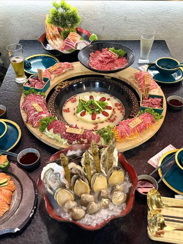 呢晚約咗一大班friend食飯,多人聚會最啱就係打邊爐,所以嚟咗旺角呢間無限時火鍋放題,叫咗個海鮮盛宴😋極尚時令刺身拼盤入面有三文魚、油甘魚 、八爪魚同埋赤蝦🍣切得夠晒厚身😻 每款刺身都係一人一件,唔怕勁快已經飽咗啦🤣豪華時令海鮮盛宴呢個海鮮拼盤有生蠔、鮑魚、勁生猛嘅海蝦同埋兩款蜆🐚 生蠔同鮑魚都超級大隻啊 。卜卜蜆鍋店員推介呢個係比較多人嗌嘅鍋,呢個鍋本來帶點微辣,令到每隻蜆都夠晒惹味🌶️ 如果想食雞煲嘅朋友,都可以額外加錢先食雞煲再打邊爐🍲安格斯牛肉盛宴圈我哋仲額外嗌咗呢一個超豐盛嘅牛肉盛宴圈,放喺個爐側邊,真係好正🙌🏻 上面有多種靚肉,包括有安格斯牛頸脊、安格斯牛肉粒、崩沙腩、薄切牛舌、頂級封門柳、金錢𦟌,我同朋友都食唔停口🥰任食肉類呢個套餐包括咗四款肉類任食,美國精選肥牛、頂級牛板腱、美國黑豚肉同埋黑豚豬腩片🐷 個人幾鍾意佢嘅黑豚肉,淥完之後幾爽彈。肥牛同埋牛板腱兩款都各有特色🐮任食海鮮除咗一次性嘅海鮮拼盤,套餐仲可以任食海蝦、脆鯇片、脆鯇骨腩同埋白鱔片 。任食海鮮當中就可以encore三文魚刺身🐟 今次朋友生日,我哋特意叫餐廳預備一個三文魚蛋糕,用嚟打卡一流🎂 炸物我哋試咗吉列蝦、香酥單骨雞翼、天婦羅雞塊、流心奶黃芋球 。火鍋配料大部份嘅火鍋配料都係喺外面嘅自助吧夾。基本嘅丸類、蔬菜、麵食都有供應。款式夠快齊備,而且排列得幾整齊。當中我就最鍾意金牛丸同埋芥末貢丸,兩款我哋都encore咗好多次😎飲品除咗常見嘅罐裝飲品同紙包飲品之外,呢度嘅生啤都係無限暢飲架🍻 可以自己喺出邊斟鍾意嘅生啤、清酒或者係白酒🍶 鍾意飲邊款飲幾多全部自己決定,啱晒一大班朋友一齊過嚟飲返杯。甜品餐廳提供咗勁多款雪糕雪條,當中仲有好幾款係韓國嘅品牌嚟㗎🍦 推介朱古力脆皮配雲呢拿雪糕🍫餐廳仲有提供烤魚同雞煲,真係好多元化,無論係想食刺身、海鮮、靚牛定打邊爐都可以嚟呢度啊😎…查看更多