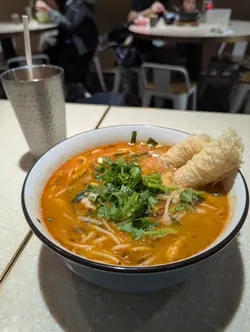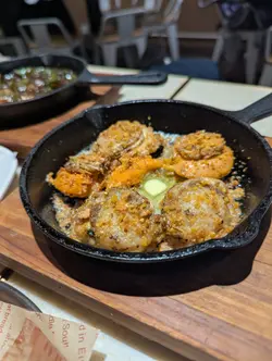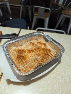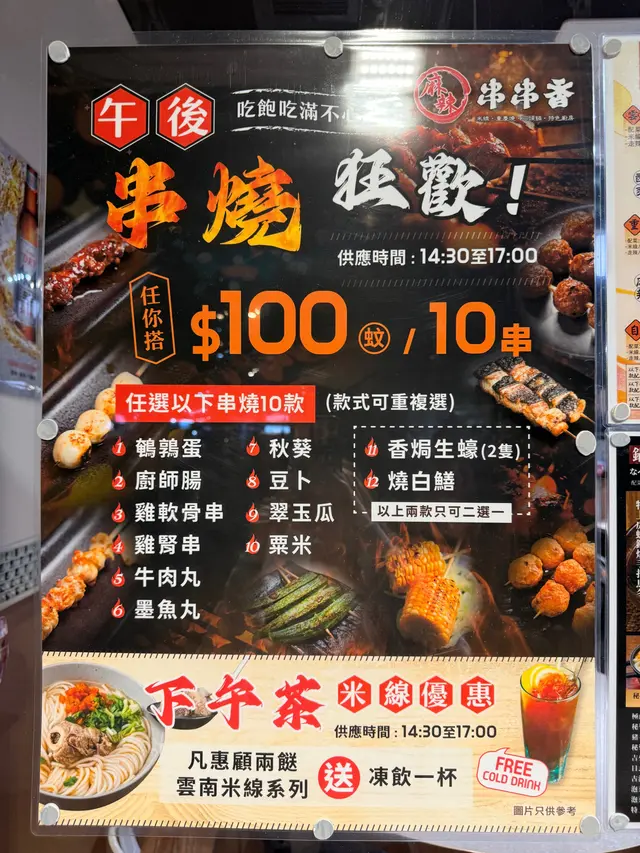 荃灣麻辣串串香係一間融合中日式風格的小店,環境簡單企理,餐牌選擇多元。除咗雲南米線,仲有串燒、炸物; 唔食米線都有其他選擇’﹕石頭鍋飯、酥皮 pizza 同手打烏冬等。我揀咗雲南米線轉紅薯粉,基礎配料有酸菜、韭菜、芽菜、芫荽、蔥花同肉醉,另再加鮮魚腩、鮮冬菇、豬腩片、枝竹同響鈴卷。枝竹常見,但響鈴卷喺米線舖真係少見,食落有驚喜。涼拌小食滕椒魚皮晶瑩剔透,冰涼爽脆,入口 Q 彈,配上滕椒香氣更惹味。涼拌墨魚頭雖然走辣 ,但仍帶少少酸酸辣辣,清新開胃;墨魚頭滑嫩有鮮味, 切成細粒容易食 。蒜香焗生蠔 蒜香濃郁,火候剛好,生蠔鮮味突出。 串燒選擇亦多:白鱔:皮脆肉彈,鮮甜味濃。秋刀魚:魚皮脆卜卜,加檸檬汁更添清香。骨附腸:帶日式風味,肉味濃郁。鵪鶉蛋:細小惹味。一口番薯:簡單但有口感。雞泡魚乾:鹹香好味。價錢合理,份量足夠。成班 friend 食串燒飲啤酒都好開心。 特別係下午茶2:30-5:30時段,凡惠顧雲南米線系列,加兩個餸仲送凍飲品一杯,經濟實惠。 …查看更多