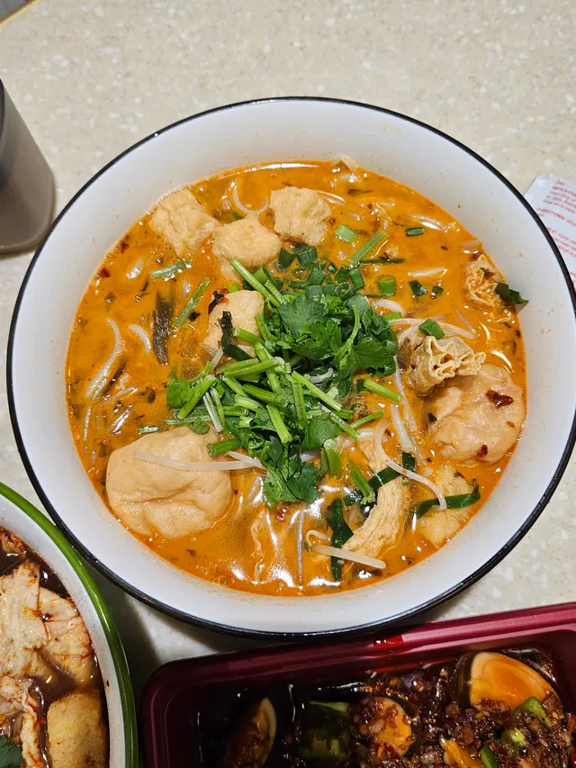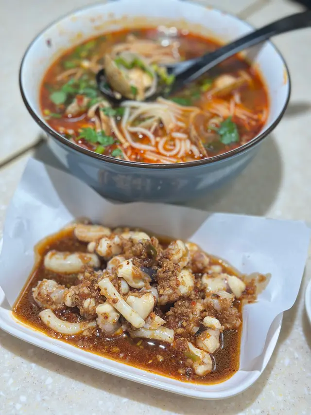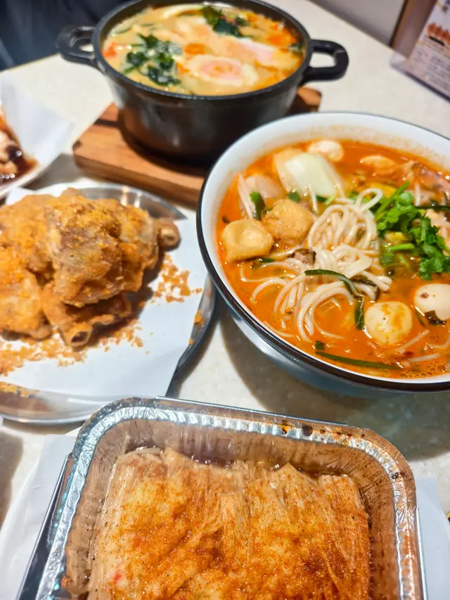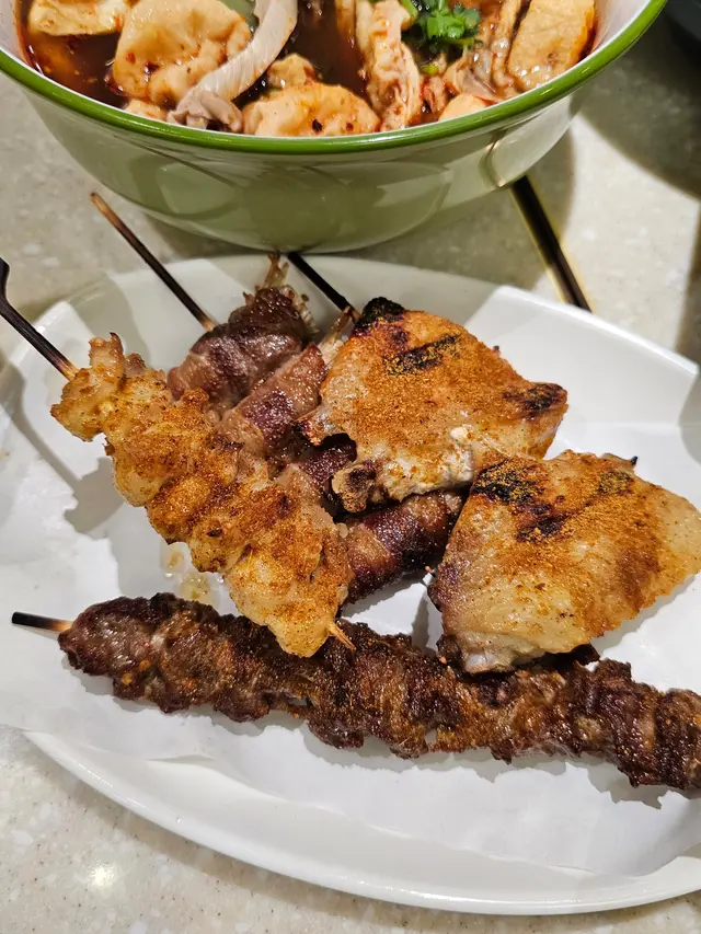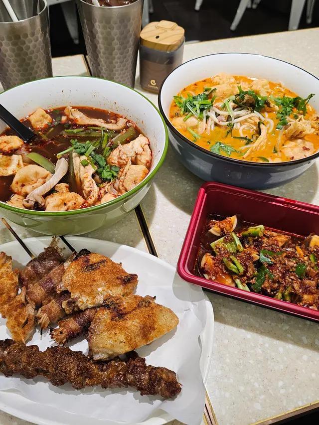 【🌶️麻辣串串香|🥸荃灣隱世酸辣粉】.今日跟荃灣地膽搵食,去到河背街嘅「麻辣串串香」,舖頭係老字號,係荃灣經營咗好多年深受行坊歡迎,最近重新裝修,帶俾食客更舒適嘅坐位,食物亦更有新鮮感!.🍜 大大碗雲南多餸米線餐廳以米線起家,我就試試佢哋嘅「大大碗雲南多餸米線」,配菜陣容頂盛:肉醉、酸菜、韭菜、芽菜、芫荽、蔥花,潮州魚蛋、魚皮餃、豬紅、豆卜、牛腩、墨魚丸、枝竹、時菜。好有一人火鍋嘅感覺,非常之充實!我有自知之明,揀咗「扣底」即少米線,扣底後其實份量都唔細,好啱大胃王食!.🥣吉列豬扒石頭鍋飯日韓混合風格,石頭鍋最重要係夠熱,熱力令到鍋邊鍋底嘅飯變成飯焦,卜卜香脆。吉列豬扒好巨大,要首先移走豬扒,再動手在石鍋中撈飯。鍾意食飯焦嘅朋友要注意,飯焦秘訣係要慢,慢慢俾時間飯熱成焦,咁就可以做出香脆飯焦啦!.🦑涼拌墨魚頭墨魚頭切成丁方,混合秘製醬汁酸酸辣辣,新鮮有咬口,好惹味!.🥟日式餃子一客六隻,煎得金黃,配汽水或凍飲非常之開胃。.🍡下午茶串燒套餐$100/10串串燒🍡,好吸引🤩,下次再嚟食過!支持小店!.🌶️麻辣串串香📍荃灣河背街84號地下A1號舖🚇荃灣站/荃灣西站.…查看更多