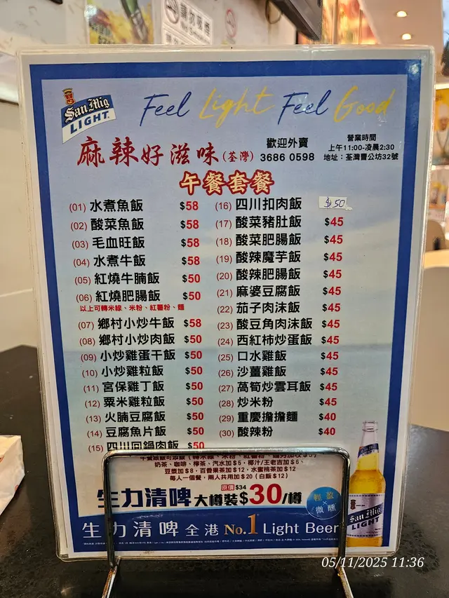 麻辣好滋味 (荃灣) 網上訂座即賺Rice Dollars 網址: https://s.openrice.com/QrbS0KSqB00 地址: 香港荃灣曹公坊32號地舖 電話: +852 36860598