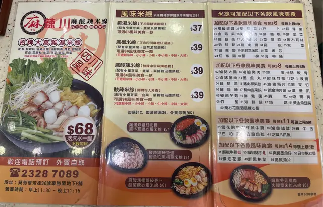 麻辣川米線 (葵芳) 網址: https://s.openrice.com/QrbS0Iay3W0 地址: 香港葵芳信芳街36號豪勝閣地下E號舖 電話: +852 23287089