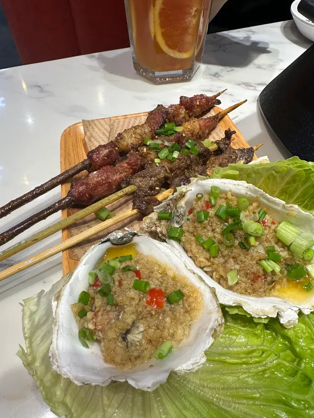 烤魚真係唔錯,用了江團魚其肉質細嫩,魚皮脆口,魚肉嫩滑,豐富嘅海鮮🦑🐟🦐,俘虜咗我了🤭總結:無論係同朋友聚餐,還是家人一齊分享,烤魚都係一道不可錯過嘅美味菜式。其獨特嘅烹調方式同豐富嘅味道,令人食過返尋味。真係食到你唔想停口!羊肉串嘅香氣濃郁,牛肉串嘅口感紮實,兩者嘅味道互相輝映,真係令人回味無窮。推薦😝青檸柑桔梳打青檸金橘梳打嘅清爽酸甜味,絕對係夏日消暑嘅好選擇。新鮮嘅青檸同金橘混合,再加上氣泡水,令飲品更加爽口解渴。查看更多