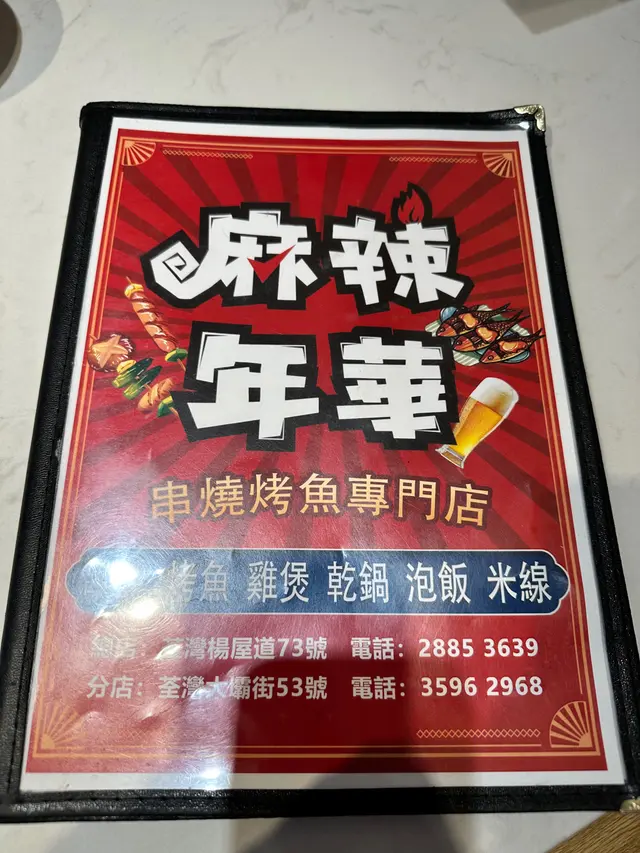 **🔥 脆皮烤魚:** 金黃酥脆嘅嘅外皮,誘人嘅藤椒香氣,令人食指大動!外皮酥脆,魚肉鮮嫩,藤椒嘅麻辣刺激住味蕾,令人欲罷不能!麻辣鮮香,藤椒獨特嘅香氣同魚肉我嘅鮮味完美融合,每一啖都係味蕾嘅享受!**🦞 海鮮什錦盛盤:** 各種新鮮嘅海鮮整齊排列,色彩繽紛,令人垂涎欲滴!每一種海鮮都保留最鮮美嘅口感,Q彈爽口,鮮味十足!原汁原味,海鮮的鮮甜自然流露,令我感受到大海嘅饋贈!**🍖 至尊紅柳羊肉串:** 紅柳枝串起嘅羊肉串,色澤誘人,香氣撲鼻!肉質鮮嫩多汁,紅柳枝獨特嘅香氣融入羊肉中,每一啖都香氣四溢!孜然、辣椒等香料完美搭配,令羊肉嘅鮮美更加突出!**🥩 黑椒牛柳串:** 黑胡椒包裹住鮮嫩牛柳,色澤誘人,牛柳鮮嫩多汁,黑胡椒嘅香氣刺激著你嘅味蕾,十分過癮!**🦪 金銀蒜烤生蠔:** 金銀蒜鋪滿肥美嘅生蠔,生蠔鮮甜肥美,金銀蒜嘅香氣與生蠔嘅鮮味完美融合,正!## 👫 二人分享,美味加倍!👫總括嚟講,麻辣年華值得我再嚟食佢其他嘅食物,絕對物超所值!查看更多