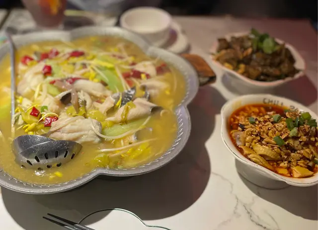 近排天氣又開始轉凍,就想起麻辣派對嘅酸菜魚,暖笠笠。這次選了普通的江團魚,魚肉爽滑,切件後完全不留魚骨,可以安心大口大口。酸菜及魚肉份量比一般餐廳多,鍋底材料有大豆芽、蒟蒻,這次額外加配水晶粉及萵荀,二個人食的話份量真係足夠有餘湯底色澤呈金黃色,酸度調較得恰到好處,濃淡適中,BB辣的辣度完全適合唔食得辣的人,大豆芽清甜爽嫩,水晶粉口感煙靭彈牙,吸滿湯汁精華,越食越過癮,每次吃都感到非常滿意涼拌爽脆魚皮,魚皮完全不腥,每片都晶莹剔透,冰凉爽脆,入口Q彈,跟青瓜絲一併吃,格外開胃!必點的口水雞是例牌份量,雞肉嫩滑有雞味,雞皮Q彈滑口,即是雞胸位置肉質亦同樣嫩口,質素不錯!冰凍的冬瓜茶,解辣一流!整體來說性格比極高,值得推介👍🏾查看更多