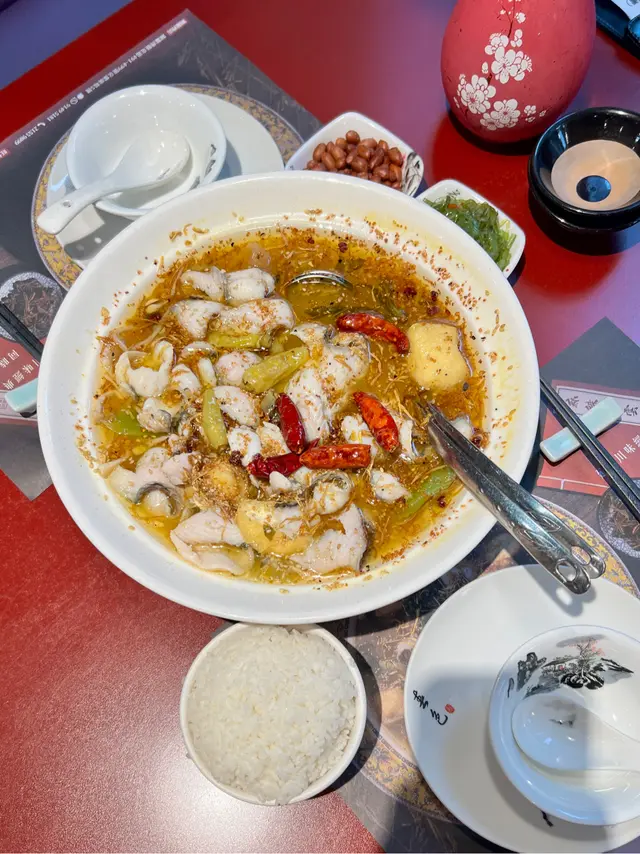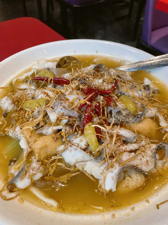 Went here with my cousin and sis, since my cousin was craving for fish fillets in sour vegetable soup. .We ordered Signature Fish Fillet in Sour Vegetable Soup with Rice, Poached Beef Sichuan Pepper Broth with Rice and Spicy Duck Blood Jelly to share. For the Signature Fish Fillet in Sour Vegetable Soup, the fish fillet was smooth, silky and meaty. They came with an abundant amount. The spiciness and sourness of the broth were on point, creating a delightful combination with the fish fillets. The Poached Beef Sichuan Pepper Broth with Rice had an intense spicy aroma. The beef was tender and paired well with the ingredients, including potato noodles, bean curd, celtuce and bean sprouts. The potato noodles had a chewy texture. The Spicy Duck Blood Jelly was mouthful and served piping hot. With lots of chilli, it had a tingling seasoning and addictive spiciness..The price of the lunch set was reasonable considering the generous portion size. The seating of the resto was quite comfortable. …查看更多