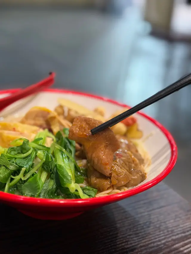 🍲 紅燒牛腩麵:湯底濃郁,牛腩超嫩! 🍠 重慶小面紅薯粉加牛肉:麻辣味濃,紅薯粉口感滑溜,好正!