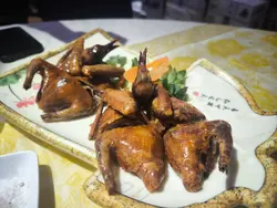 低見到有五指毛桃燉排骨即刻每人叫一盅先,細細盅好足料,$48一盅好抵飲。家炆鵝係店長推介嘅,油漆係炆得好入味,幾好食。麻雞就係呢度嘅招牌菜之一,要預訂,留咗半隻,因為想食多啲其他嘢,味道都ok嘅,不過冇想像之中咁出色。鹽鮮魷夠鑊氣,魷魚新鮮彈牙,雖然油炸但係又唔係好多油。得椒鹽鮮魷就梗係要試埋佢個椒鹽九肚魚啦,一樣做得咁好,好夠鑊氣。後仲試埋佢哋嘅乳鴿,肉質夠嫩滑,而且又唔係炸到好勁。呢度整體唔錯,唯一係人手不足,一個阿姐打全場真係超勁。