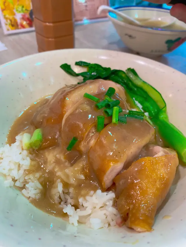 雞肉嫩滑無骨,配上熱騰騰嘅白飯同店家醬汁,簡單又滿足。醬香豬手配手撕雞撈米線