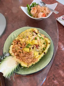 好耐冇食泰國菜,九龍城係有最多唔同格調嘅泰國餐廳. 呢間係算最老字好,環境最好,有三層,座位set得比較寬敞,侍應啲人數都比較多!星期六都唔使等位, 坐低叫杯啤酒飲吓先. 好想食串燒, 點咗半打豬肉,再點燒就魚. 配啤酒💞之後點一客咖哩大頭蝦配法式硬未包. 汁調味👍再點一客菜同泰式炒粉絲. 幾味菜式都好食👍之後叫多個芒果糯米飯,芒果唔太甜,都算好食嘅🥰