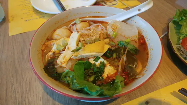 鐘意食辣既小胖男友就覺得可以再辣d 就加更惹味另一樣我地揀左轉冬蔭公湯底既雞絲魚蛋湯河話就話雞絲 查實係疑似無骨既海南雞件