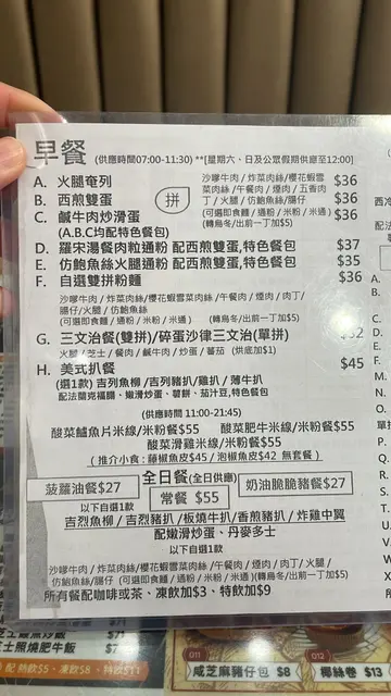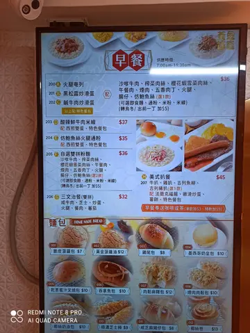 星期日經過觀塘想搵早餐食,去到東廣場一帶都搵唔到啱食,想食嗰間工廠茶餐廳假期又唔開,行前少少就發現咗呢間茶餐廳。正正常常嘅早餐選擇,揀咗沙嗲牛肉米粉配火腿奄列,估唔到佢啲沙嗲牛肉都幾多,比起好多茶餐廳都多。火腿奄列都煮得唔錯。雖然味道就唔係我自己最鍾意嗰種,因為佢比較甜,但係30幾蚊真係冇投訴,而且米粉都好好食。佢本身仲有一個餐包,不過我自己走咗包,朝頭早唔想食太多嘢。另外佢門口麵包櫃啲麵包真係好吸引,仲要比起一般連鎖茶餐廳平,菠蘿包先至$8…查看更多