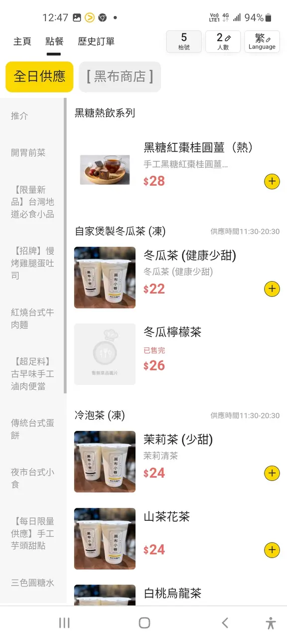 + 新增餐牌