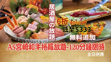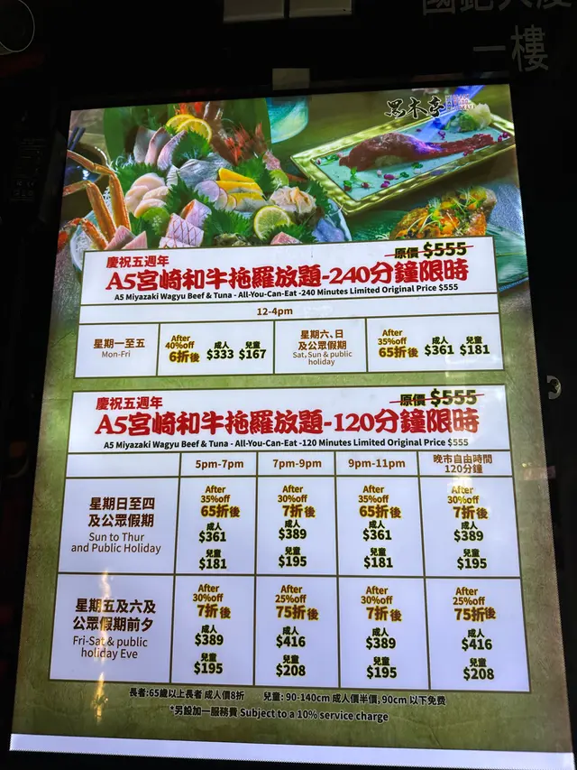 黑木亭五周年紀念,轉做A5宮崎和牛拖羅放題,原價$555一位,九點後入坐$361位😋同朋友訂左枱食返餐勁嘅。九點來到全場爆滿十分熱鬧,店內間左個自助區出來,冷盤熱盤都有唔少,當然仲有飲品櫃、甜品櫃、雪糕櫃啦。掃碼落單,食物選擇好多😋大根鮑魚、花膠海參、清酒煮蜆等最快上桌。串燒炸物等陸陸續續都來了,上菜速度快,食物仲熱㗎,個海膽和牛牛角包正喎。刺身!刺身!刺身!黎食日式放題就係為左呢樣🤤呢間款式勁多,好多冷門野都有得叫,全部新鮮勁正,必食拖羅🤤壽司都多元化,正常款、火炙款、軍艦類同創意類😋飯軟綿綿有醋香,唯一不滿就係太大件啦,保持居酒屋size😅仲有西式(?)海鮮桶,仲蒜同橄欖油煮熟的,又香又鮮。食到咁上下去食下水果先,自助區有西瓜、蜜瓜、火龍果等,再落單叫埋榴蓮!榴蓮都任食㗎😍甜品都好多得揀,楊枝甘露、馬卡龍、蛋糕仔、豆腐花等,當然少得雪糕雪條🤤另外飲品都係超誇張,罐裝汽水、紙包茶、咖啡、啤酒、白酒、紅酒、清酒等全部任飲,朋友飲咗幾碗椰子雞湯,佢話好正喎🤤食到last order真係捧住個肚走,太滿足啦😋…查看更多