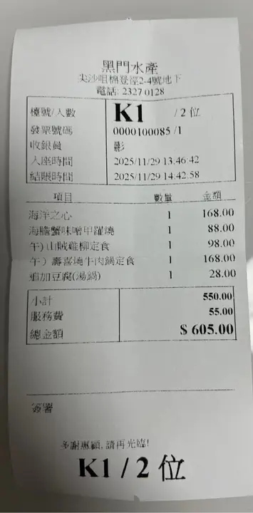 黑門(尖沙咀)位於棉登徑,K11附近感覺似置身於日本嘅居酒屋,牆身放了很多宮崎駿嘅壁畫,地方又大又舒服修設計日系,餐廳仲有好多特色小食,海鮮各種時令嘅食材,都係新鮮空運到港海膽蟹味噌甲羅燒甲羅燒入面有海膽蟹肉鵪鶉蛋同蟹籽好香濃嘅海膽味,鹹鮮味十足,連埋蟹籽一齊食另口感層次豐富,鮮味爆棚,仲有專人燒好放在面前,連埋餅乾一齊食,有口感三文魚腩刺身三文魚腩刺身凝脂油花密佈,入口瞬間豐腴脂香,魚肉質地細緻柔嫩,有彈性,咬下時釋放出濃郁魚油甘香味壽喜牛肉鍋牛肉有四大片,肉質鮮嫩,脂肪同牛肉嘅比例平均,壽喜牛肉鍋的湯底甘醇濃郁,高湯的鮮甜與醬油層次豐富,牛肉薄片在沸騰的湯汁中輕涮,入口柔嫩多汁,脂香四溢,豆腐吸飽湯汁,咬下時豆香嫩滑,娃娃菜清甜爽脆,秀珍菇與冬菇濃郁菌香,金菇細緻口感,薯粉滑溜彈牙,吸附湯汁的精華,每一口都飽滿甘美,食材的鮮甜令人回味無窮北海道生蠔生蠔非常大隻,又厚身生蠔上面鋪滿大大粒魚子同埋蔥花,生蠔肉身飽滿如凝脂,入口冰涼滑嫩,爆出濃郁海水鮮味,奶油般甘甜,純淨鮮美酥炸雞軟骨金黃酥脆,咬下「喀嚓」作響,外層薄脆,軟骨嚼勁十足,帶點黏糯膠質,越嚼越有雞油香氣…查看更多
