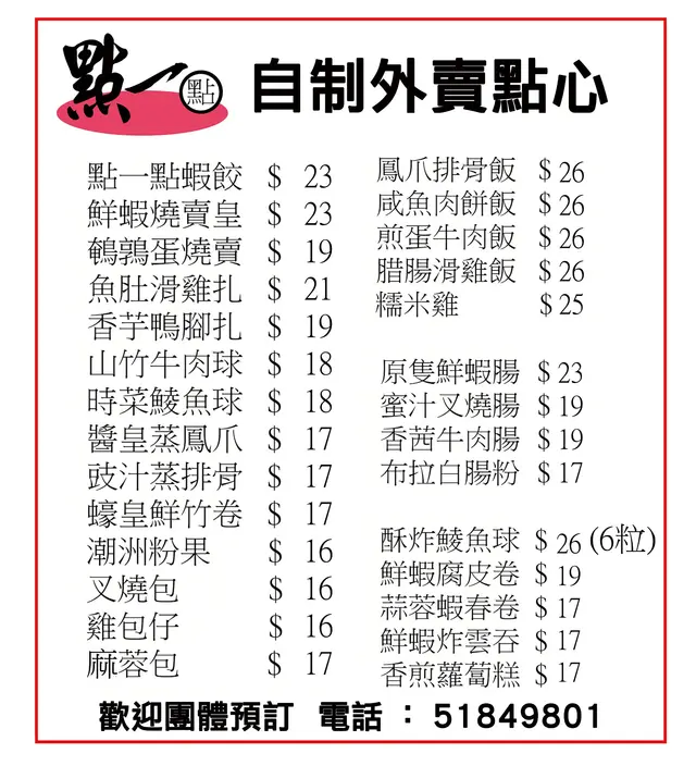點一點 (葵芳) 網址: https://s.openrice.com/QrbS0YQu800 地址: 香港葵芳興芳路188號地下C號舖 電話: +852 51849801