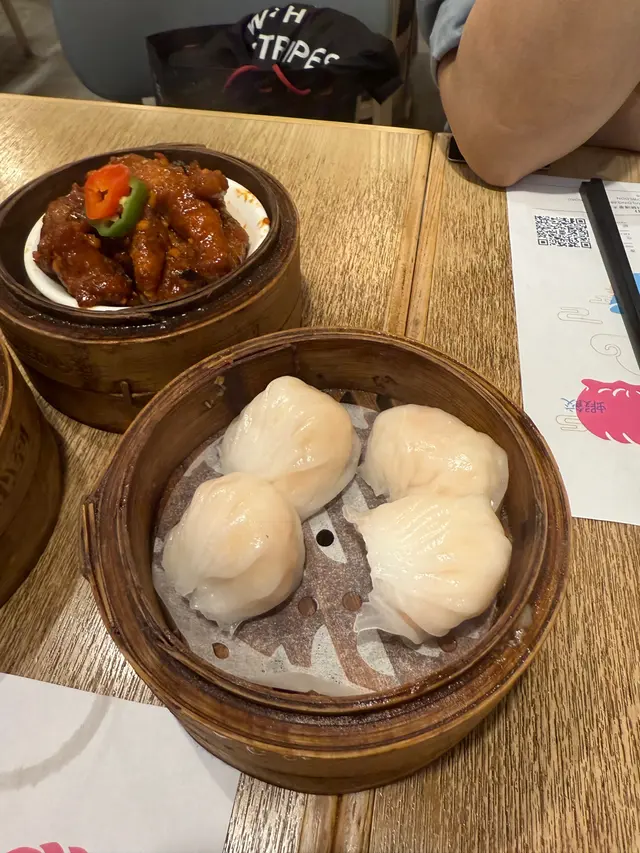 Always going cha liu for dim sum, this time we come to dim sum here to try try, my second time, not comsy as usual cha liu, a bit crowded, and you can sit here for long cause many people waiting outsides..Prawn Dumplings is in good condition with four pieces haaSteamed Chicken feet in Black Bean Sauce is okay with good seasoning yayaSteamed Bean Curd Roll with Chicken and Fish Maw tastes nice too haaaSteamed Egg Yolk Black Bun having good taste with full of egg yolk haaa though i feel shocked when i saw the size of this little black buns lol, Rice Flour Rolls filled with Radish Net Spring Rolls is below our expectation, even quite crispy but i’d rather pick bbq pork rice noodle if i know this lolSteamed Rice with Chicken Feet and Pork Ribs is in great portion, and the flavor is good, with tender pork ribsoutsides:insides:menu:The portion is pretty small here, and the price isn’t in very cheap level, but i think still okay if you get bored of cha liu sometimes …查看更多