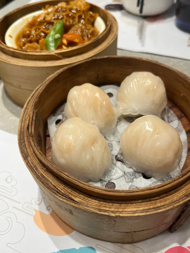 餐廳:點心到地點:油麻地彌敦道菜式:中式點心餐牌:餐廳推介、餃點類、酥點類、生滾粥、小食、中點類、包點類、腸粉類、飲品、蔬菜類、原盅燉湯、甜點類、籠仔蒸飯類。價錢親民。茶位每位$5。落單用QR Code。蝦餃 (4粒) $34呢度可以選擇叫蝦餃燒賣4粒或者兩粒!蝦餃塊皮厚薄適中,入面餡料爽口,無辣椒醬食都唔錯。燒賣 (4粒) $34燒賣真係有大大粒蝦係面,面頭再加上蟹籽,下底係啖啖肉爽爽脆脆。兩粒燒賣就$18。欖仁馬拉糕 $23欖仁馬拉糕係圓形蛋糕,蒸得好鬆軟,好香蛋味,面頭有少少欖仁。b]醬皇金錢肚 $28醬皇金錢肚有7塊,口感係完美爽口彈彈地牙又滑滑地,個汁少少辣,好惹味,唔會太油或者重口味,面頭加上紅綠辣椒。下底居然有3粒冬瓜粒,可降低油膩感。蜜汁叉燒腸 $28蜜汁叉燒腸一客兩大條切開六邊,半透明白色腸粉皮包住叉燒餡,上枱時先加豉油。腸粉滑溜,入面叉燒餡都唔錯。楊枝甘露 $25楊枝甘露好足料,有新鮮芒果粒、柚子肉同西米,味道甜度適中,甜得黎帶少少柚子甘甜,西米超多,夏天食好正!所有點心都係即叫即整,熱辣辣上枱,質素高,而價錢並唔貴,食左咁多點心人均一舊水,無加一。平日午市要搭枱,環境算乾淨企理。…查看更多