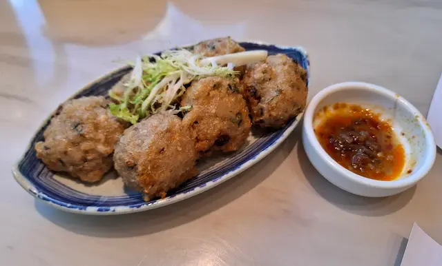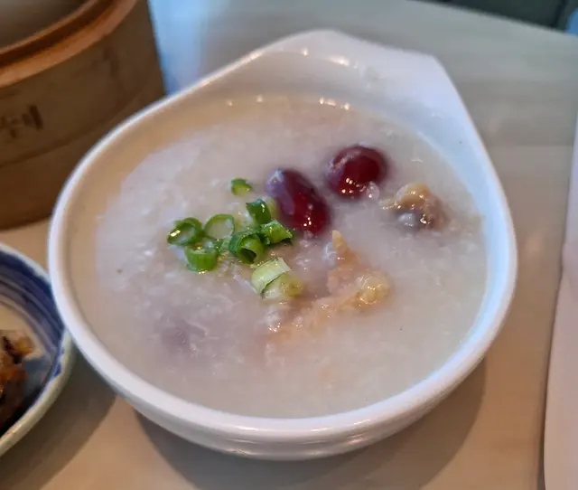近排經過旺角金雞廣場地下有間新派食點心嘅點心到 MIX大排檔,見到啲點心都幾特色,就入去飲下茶食下點心啦!店內環境整潔乾淨,裝修明亮簡約,地方都幾闊落,無酒樓咁嘈吵,以及枱同枱之間唔會覺得擠迫,感覺舒服。呢度啲點心即叫即蒸,更設有香港工場,確保食物新鮮。茶芥每位$5,無另收加一。黑蒜螺片燉肉排湯 非常熱嘅燉盅,湯入面有好多材料,包括黑蒜、螺片、肉排、淮山、雞腳、杞子、桂圓和紅棗等,濃郁而不油膩嘅燉湯,淡淡黑蒜香氣散發出來,十分足料。紅棗雞粥雞件份量唔少,肉質鮮嫩,有調味嘅雞肉,粥底帶少少嘅紅棗香甜味,米香綿滑,鮮味很配搭。晶瑩鮮蝦餃 蝦餃外皮晶瑩通透,皮薄喊靚,可選2粒或4粒。蝦餃餡料漲滿,蝦肉都好大隻,用料上乘,足料又爽口。鳳爪排骨飯一上枱熱騰騰嘅鳳爪排骨飯,排骨肉質鬆化,咬落軟腍,鳳爪調味剛好,質感軟軟,米飯吸收左醬汁,所有材料混合食好惹味。蜆介鯪魚球 鯪魚球炸得金黃香脆,魚肉新鮮,入面加咗蔥粒,味道更香,彈牙爽口,點埋蜆介醬一齊食,好滋味。鮮竹牛肉球 飲茶時經常會揀嘅係牛肉球,都係最受歡迎嘅點心之一。牛肉味道濃厚,馬蹄好爽,牛肉球入口好嫩滑,不錯。凍檸檬茶及凍檸檬水,兩杯檸檬同樣清新,口感冰涼,即時解渴。…查看更多