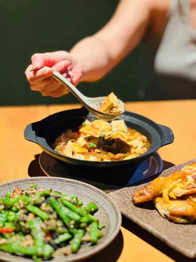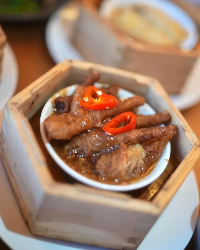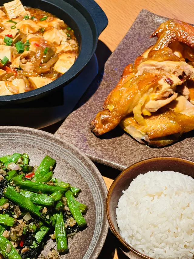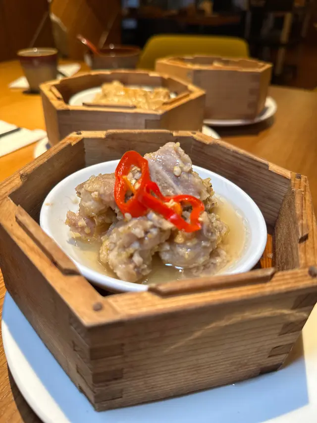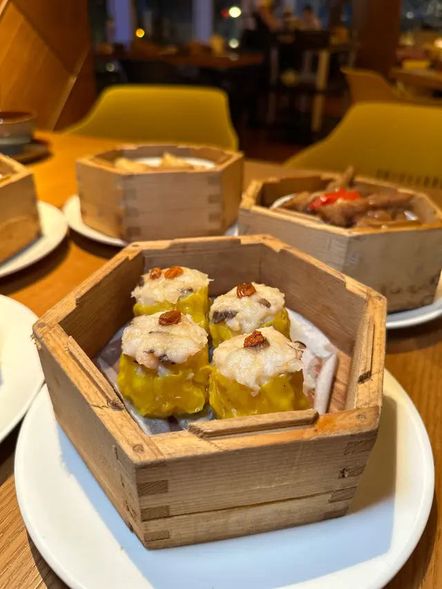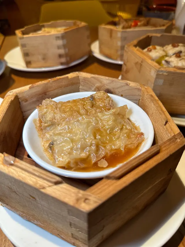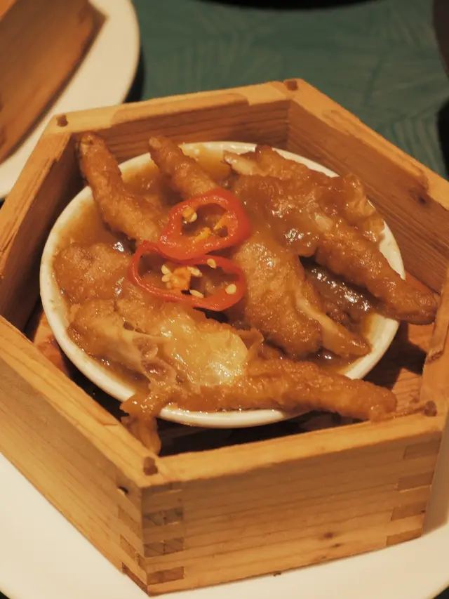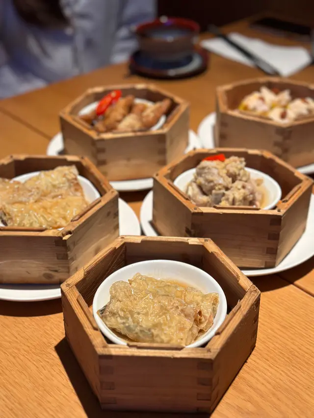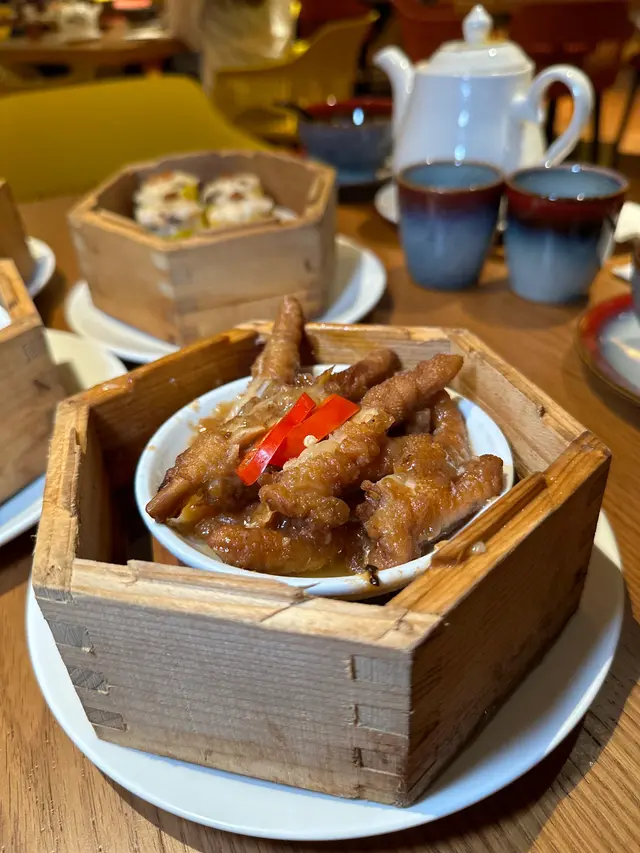 移左民既朋友難得返左黎香港,我地就去左山頂都行下,經過呢間中餐廳,發現有四人餐,而且價錢唔貴,好抵食。呢度用QR code 落單,好方便。我地4個人,點呢個晚市4人餐就岩岩好。套餐包括傳統點心同埋特色小菜。,點心方面,有燒賣皇、鮮竹卷、醬皇蒸鳳爪同埋蒜香蒸排骨。燒賣大大粒,鳳爪幾入味,水準好高。小菜方面,有招牌烤三黃雞、麻婆豆腐同埋欖菜肉燥四季豆。我最鍾意佢嘅燒三黃雞,皮脆肉嫩,啲肉超juicy。仲有成個電飯煲咁多既白飯,啱晒我呢個飯桶。…查看更多