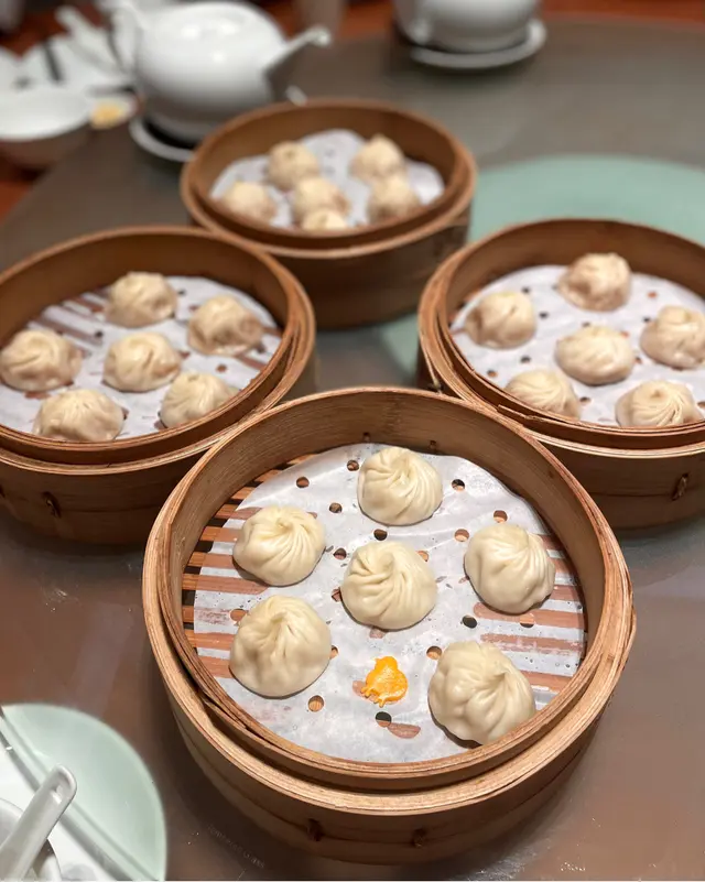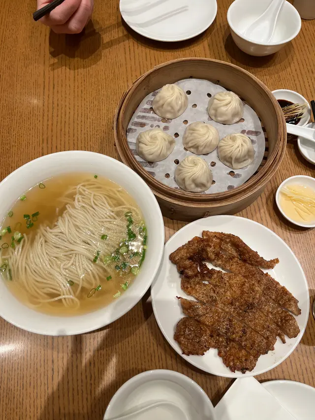 同屋企人一行四人嚟到屯門 V City 的鼎泰豐食晚飯,呢度主打上海點心,出名既係小籠包,作為家庭聚會既選擇,相對穩陣,而且每款菜式都有一定既水準,符合唔同人口味需求。餐牌選擇豐富,包羅萬有,從小籠包到炒飯、蒸菜、甜品,滿足唔同人既需要。餐廳裝修簡潔明亮,環境衛生一流,桌椅擺設亦十分舒適。由於係晚飯時間,所以人流較多,不過服務員反應快,態度亦好親切。高湯蒜蓉菠菜苗呢碟高湯蒜蓉菠菜苗味道相當不錯,菠菜苗清甜細嫩,口感爽脆。蒜蓉既香氣撲鼻,加上高湯既鹹香,非常入味。唯一略嫌係油分稍多,但總體嚟講,呢道菜相當稱職。原味小籠包原味小籠包係鼎泰豐既招牌,皮薄餡多,咬落去啲肉汁即時湧出嚟,豬肉餡料鮮甜,食落唔會覺得油膩。呢籠小籠包價錢合理,性價比唔錯,值得一試。炸豬排蛋炒飯呢款炒飯炒得粒粒分明,每粒飯都包裹住蛋香,炒得相當乾身。配上炸豬排,外層酥脆,內裡肉質嫩滑,食落口感層次豐富。無論係單食定配其他菜一齊食都好滿足。黃金流沙包黃金流沙包係呢餐既甜品highlight,包皮柔軟,咬開後,流沙餡即刻流出嚟。蛋黃餡料香濃滑溜,帶有少許鹹香同甜味平衡得啱啱好。呢款包熱辣辣食最為好味,推薦俾鍾意甜品既朋友。整體而言,呢次食鼎泰豐係一個滿意既體驗,特別適合家庭或朋友聚餐。呢度既菜式水準穩定,價錢雖然唔算最平,但以環境同服務質素黎講都係物有所值。最推薦既係小籠包同炸豬排蛋炒飯,絕對係值得一試既選擇。…查看更多