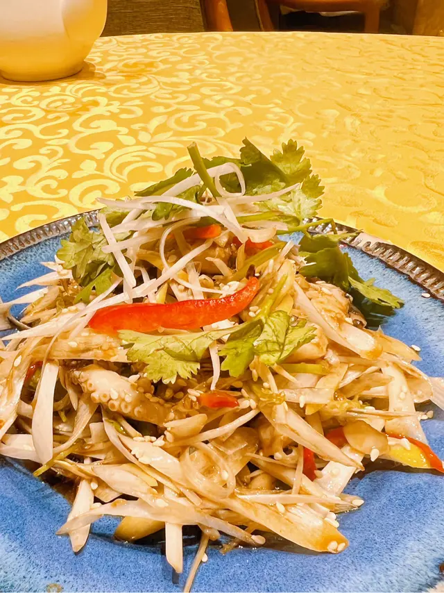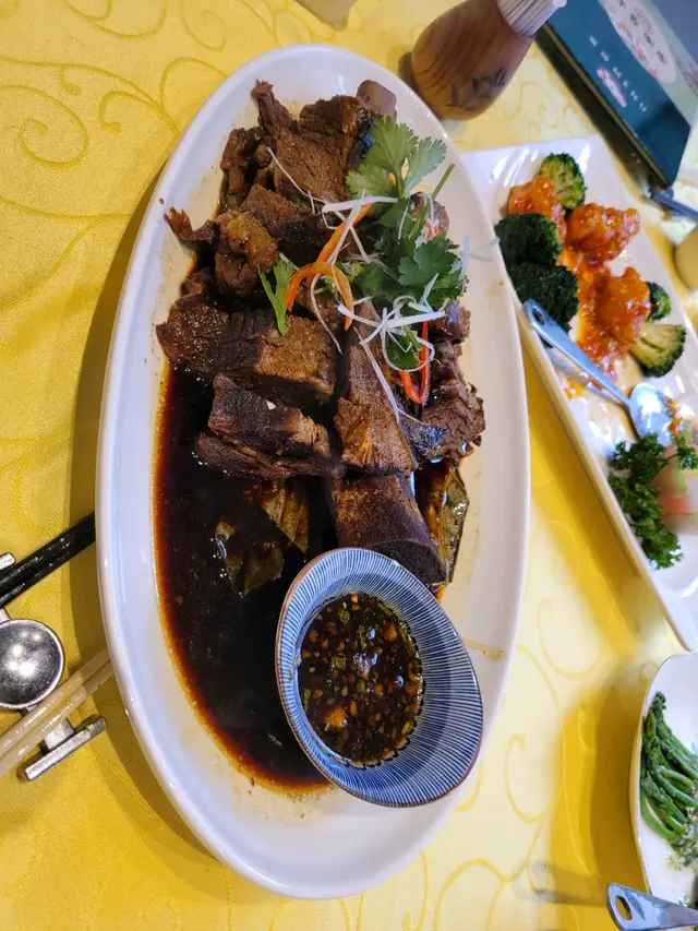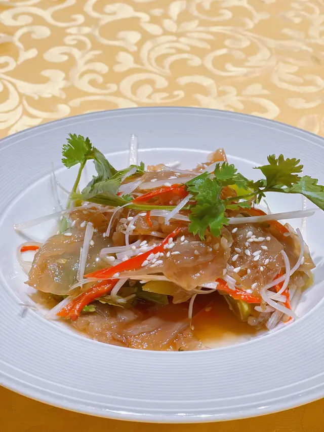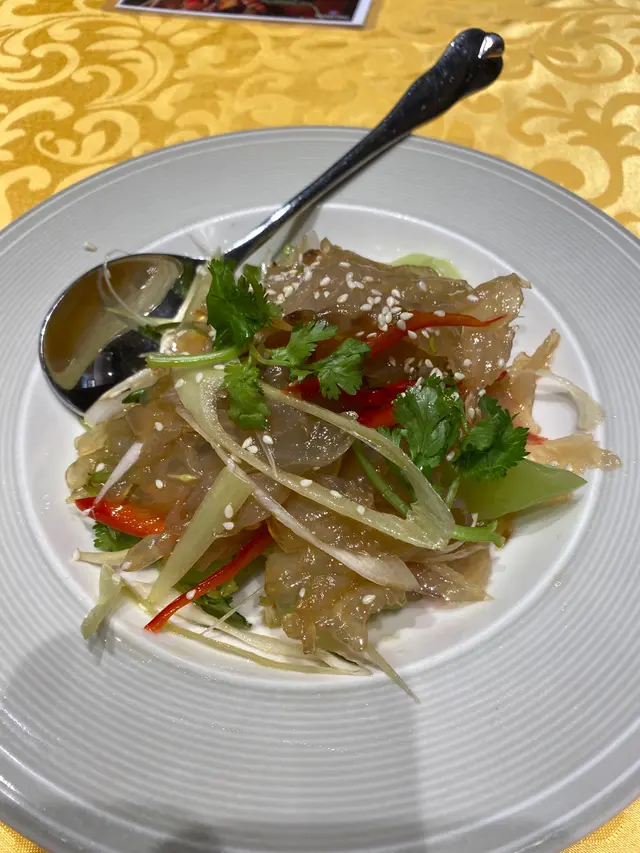 唔知點解,食完哩餐嘅味道記憶唔多,反而係對佢嘅擺盤有記憶😓可能味道比我想像中較平凡。黑醋骨同雞絲粉皮係比較值得推薦,係一眾菜式中唯二仲有記憶嘅味道。當中有一道菜係豬腳筋,口感同牛筋係有分別,食落感覺爽身少少同一絲絲嘅質感,但係煮得可能唔夠耐,所以唔係幾入味。有一道菜個樣似咕嚕蝦丸,咬落入面似由蝦滑加粉所組成,唔係彈牙,口感有啲奇怪。甜品嘅高力豆沙望落好吸引,但係內裡得豆沙無香蕉,蛋白層偏厚,唔係想像中咁好食。…查看更多