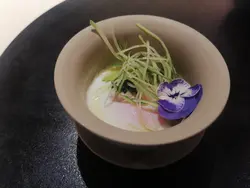 菊花豆腐白麵豉湯清淡而不失風味,菊花豆腐的滑嫩與白麵豉的香氣相得益彰。