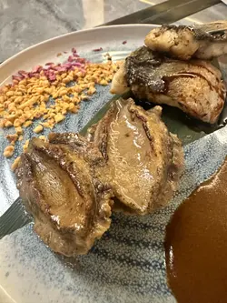 鐵板海鮮慢煮鮑魚和白鰻,口感都十分鮮美,鐵板的火候掌握得宜,讓海鮮的鮮味充分釋放。