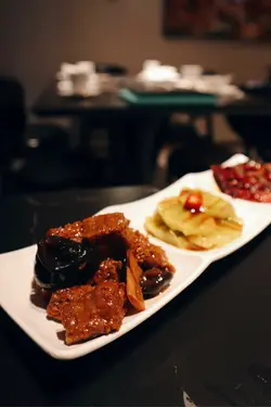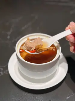 好耐無食中菜,今次揀左間主打中式點心同精緻中菜餐廳🍴最近仲推出咗兩款二人套餐,有成八道菜咁多,真係好抵食!二人套餐 C $598前菜上海烤麩經典嘅上海冷盤小食,以烤麩作為主料,加上木耳、香菇等等嘅配料製成。每樣食材都吸收哂醬汁,食落口感豐富,味道香濃。芥末香脆萵荀萵荀炸到金黃香脆,加上芥末令到萵荀食起上嚟更惹味,食落口感爽脆同時帶點咸香。西班牙黑毛豬叉燒叉燒烤到外層有點焦香,同時色澤亮麗,非常吸睛。食落肉質嫩滑多汁,口感好juicy,醃得非常入味。燉湯姬松茸竹笙燉雞湯飲落雞味香濃,姬松茸令個湯更鮮。主菜咕嚕蝦球蝦球好大隻,食落口感滑溜彈牙,鮮味十足,醬汁味道酸酸甜甜,非常開胃。水煮牛肉上菜時香氣撲鼻,麻香味十足,牛肉份量都幾多,食落口感非常嫩滑,鐘意食辣嘅朋友絕對唔可以錯,唔太食得辣嘅朋友亦可要求少辣。主食點心拼盤呢間餐廳嘅點心非常精緻,啱哂打卡影相。點心拼盤有五款點心,包點同炸物都有,可以一次品嘗哂餐廳最出色嘅點心,真係超滿足。甜品芒果布甸食落口感滑溜,甜度啱啱好,仲有好多芒果。木瓜燉雪耳飲落好香甜嘅南瓜味,雪耳好足料,滋補又美味。…查看更多