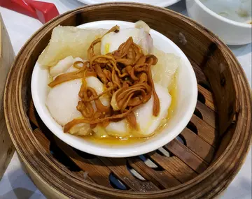 魚湯鮮竹卷,上湯鮮甜,鮮竹卷饀多,味道豐富。水晶鮮蝦餃,不是很大粒,入面的蝦很爽甜,雖皮薄但不夠煙靱。豉汁蒸鳯爪,很腍,味道惹味,有少少辣,豉汁味濃。潮州蒸粉果,皮厚,但饀料好香,有很多芹菜味,又有一些爽脆的葛和花生,很好味!