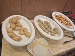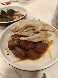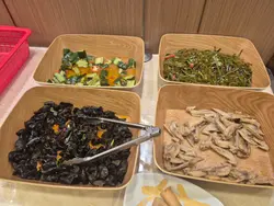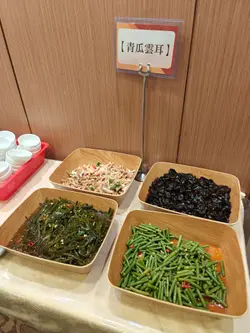 涼拌有豬耳、木耳、豆角同海帶炸物有鹹水角、蜆芥鯪魚球同煎釀落子,後期轉咗做蝦春卷大部分食物都有唔錯質素