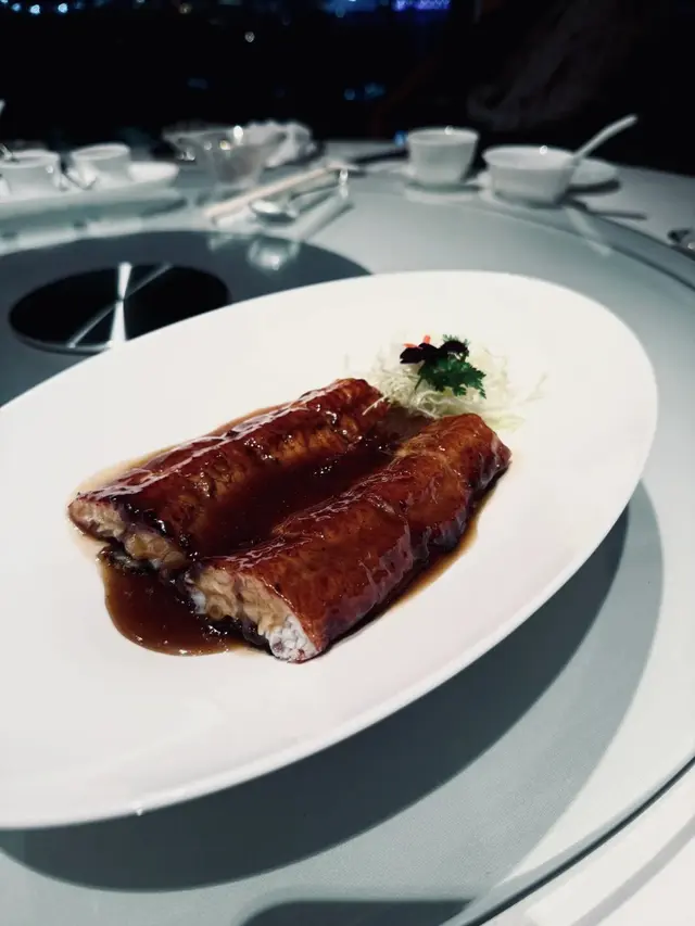 今次生日特登去咗四季酒店嘅龍景軒,無論食物同服務都好有水准,慶祝特別日子真係好適合!片皮鴨師傅會推住部餐車過嚟即場片皮,儀式感十足!鴨皮烤得香脆,帶少少脂香,用蒸籠保持溫度好細心。配料可以無限添加,夾住薄餅一齊食好滿足。生菜包鴨鬆(二食)用片皮鴨剩餘嘅鴨肉碎炒成,鑊氣夠,夾住新鮮西生菜一齊食,爽口又惹味。甜芥辣燒鰻魚鰻魚燒得皮脆肉嫩,甜醬同山葵味意外地夾,味道有層次得嚟又唔會太嗆,幾有驚喜!鮮合桃百合炒蝦仁蝦仁大大隻,口感彈牙,合桃同百合清新爽脆。不過調味相對保守,鍾意清淡口味嘅人會鍾意。龍景軒炒飯炒飯粒分明,龍蝦肉都幾大舊,整體合格,但以米芝蓮標準來說未算特別難忘。前菜同甜品當日有免費前菜小品,另外因為生日,餐廳仲送咗甜品碟上寫咗祝福字句,餐後仲有龍井荷葉茶幫助消化,好貼心。總結:環境同服務絕對對得住米芝蓮級數,食物整體質素高,片皮鴨同燒鰻魚尤其出色,適合慶祝生日或紀念日。價錢偏高但偶爾享受下都值得!…查看更多