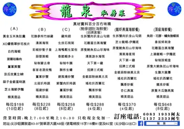 十月之星慶生,朋友係外國返香港好少食唐餐,朋友又想唔到吃乜嘢!於是我提議去“私房菜”吧,這家之前都有同朋友去過。我哋一行五人選擇咗“鮑參翅肚”餐。當菜色開始上枱時“壽星仔”開始不斷講:估唔到😂蒸蟹蛋白滑夠酒香芝麻雞皮脆冇油鮑參翅肚夠入味條魚蒸到啱啱好扇貝蒜香味夠香三色蝦各有特色蟹肉勾翅好好味瑤柱西蘭花清淡炒飯夠乾油唔多芒果布甸做甜品壽星仔問 : 點解而家仲可以唔使$300 可以食到咁多嘢!我同壽星仔講 : 而家香港嘅私房菜大部分都係樓上,所以唔使負擔昂貴租金!雖然龍泉無華麗嘅裝修,但勝在地方舒服,回家食飯嘅感覺(當然屋企唔會成日食鮑參翅肚~haha)。當然其他朋友對今餐亦讚口不絕,如果遲D再有飯局的話,可以再黎,其中一個好處就係人多可以有獨立房間。下次亦可以試下其它菜單。…查看更多