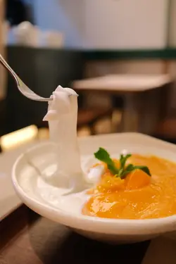 隱藏於尖沙咀亞士中厘道,鋪頭掛滿有關「應時而食」的裝飾店面雖然細細但充滿傳統港式糖水鋪的風味,一於試下佢😎✿ ✫ ✿ ✿ ✫ ✿ ✿ ✫ ✿ ✿ ✫ ✿ ✿ ✫ ✿ ✿ ✫ ✿ ✿ ✫🥢芒果河粉(凍)💰58椰奶浸著一條條晶瑩剔透同彈牙的「河粉」。「河粉」真身係由椰汁同啫喱粉製成,河粉QQ非常滑身,椰汁中仲加左哦芒果汁同芒果粒增加口感,夏天食一流!🥢一盤大滿足(熱)💰60鐘意食中式糖水既朋友仔就可以揀呢款,一次過試哂蛋白杏仁茶、香濃芝麻糊、養生核桃糊同十年陳皮蓮子紅豆沙🤩 杏仁茶質地細膩,蛋白份量都幾多😝芝麻糊同核桃糊堅果油脂香😝紅豆煲到起沙但仲有保留到顆粒感,陳皮化解左紅豆既甜膩🥢府城蝦捲💰38外皮十分酥脆,內餡的蝦肉紮實彈牙,混了少許豬肉增加滑潤感,偶爾咬到馬蹄粒,清甜多汁。✿ ✫ ✿ ✿ ✫ ✿ ✿ ✫ ✿ ✿ ✫ ✿ ✿ ✫ ✿ ✿ ✫ ✿ ✿ ✫✍🏻總評:加🔟服務費:❌👭🏻推薦指數:🌕🌕🌕🌕🌕👭🏻回頭指數:🌕🌕🌕🌕 🌕👭🏻環境評分:🌕🌕🌕🌕🌕👭🏻服務評分:🌕🌕🌕🌕🌕✿ ✫ ✿ ✿ ✫ ✿ ✿ ✫ ✿ ✿ ✫ ✿ ✿ ✫ ✿ ✿ ✫ ✿ ✿ ✫💰人均消費:$50-$70…查看更多