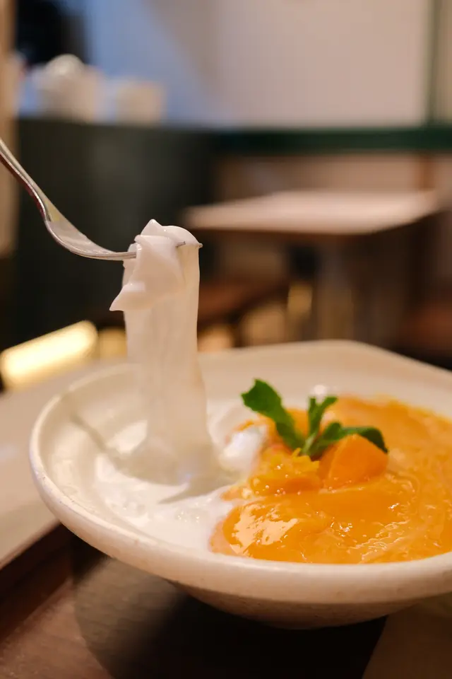 隱藏於尖沙咀亞士中厘道,鋪頭掛滿有關「應時而食」的裝飾店面雖然細細但充滿傳統港式糖水鋪的風味,一於試下佢😎✿ ✫ ✿ ✿ ✫ ✿ ✿ ✫ ✿ ✿ ✫ ✿ ✿ ✫ ✿ ✿ ✫ ✿ ✿ ✫🥢芒果河粉(凍)💰58椰奶浸著一條條晶瑩剔透同彈牙的「河粉」。「河粉」真身係由椰汁同啫喱粉製成,河粉QQ非常滑身,椰汁中仲加左哦芒果汁同芒果粒增加口感,夏天食一流!🥢一盤大滿足(熱)💰60鐘意食中式糖水既朋友仔就可以揀呢款,一次過試哂蛋白杏仁茶、香濃芝麻糊、養生核桃糊同十年陳皮蓮子紅豆沙🤩 杏仁茶質地細膩,蛋白份量都幾多😝芝麻糊同核桃糊堅果油脂香😝紅豆煲到起沙但仲有保留到顆粒感,陳皮化解左紅豆既甜膩🥢府城蝦捲💰38外皮十分酥脆,內餡的蝦肉紮實彈牙,混了少許豬肉增加滑潤感,偶爾咬到馬蹄粒,清甜多汁。✿ ✫ ✿ ✿ ✫ ✿ ✿ ✫ ✿ ✿ ✫ ✿ ✿ ✫ ✿ ✿ ✫ ✿ ✿ ✫✍🏻總評:加🔟服務費:❌👭🏻推薦指數:🌕🌕🌕🌕🌕👭🏻回頭指數:🌕🌕🌕🌕 🌕👭🏻環境評分:🌕🌕🌕🌕🌕👭🏻服務評分:🌕🌕🌕🌕🌕✿ ✫ ✿ ✿ ✫ ✿ ✿ ✫ ✿ ✿ ✫ ✿ ✿ ✫ ✿ ✿ ✫ ✿ ✿ ✫💰人均消費:$50-$70…查看更多