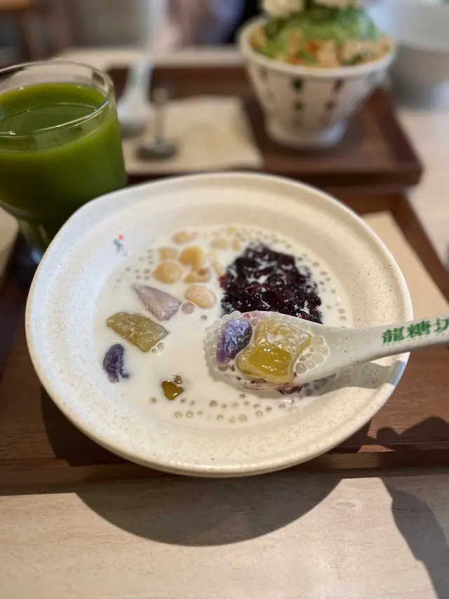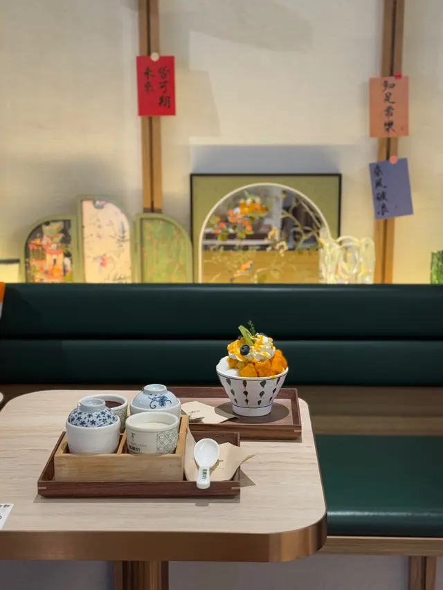 食完成日都心思思想食甜品,喺開銅鑼灣食飯就黎呢間食下,都幾有驚喜🤩 呢到希望將推廣創新糖水文化,重新演繹傳統糖水~ 幾有心思既係有幾多卡仔,畫左卡通版既甜品之餘仲有唔少鼓勵人既說話👏🏻💬,包括「條路係自己揀,行落去就啱啦!」、「今日唔好,聽日會好!」、「唔好理人點睇,做自己就得啦!」、「唔好怕,總有方法解決!」等等,勵志得黎又透過甜品帶黎一點甜幾窩心😌 嚟緊12月會開埋入元朗,到時又多一個選擇😜(5 😍 係滿分,🤩係半分)芒多多楊枝甘露雪花冰 🥭🍊🍧 - $78 (好味指數:😍😍😍😍)因為食完dinner有啲飽,所以叫左個單人份~ 上面鋪左微酸既奇異果片🥝、清甜既藍莓🫐、清香爽滑既椰汁凍🥥、芳香誘人又香甜多汁既芒果粒🥭,粒粒都好大,食得幾爽🤤 而下面既雪花冰係楊枝甘露味,以柚子味🍊為主,冰涼清爽,細膩幼滑,如果芒果味🥭再重啲就perfect啦🤪榴蓮河粉 - $68 (好味指數:😍😍😍😍😍)呢個河粉同平時鹹食既版本唔同,係今次既係椰河粉🥥,口感更加纖巧,細緻滑溜又帶少少彈牙,亦有清香既椰漿味🥥,同時索晒個榴蓮忌廉既味道😻 除左有幼滑既榴蓮忌廉之外,仲有軟綿既榴蓮果肉,榴蓮味道芳香馥郁,香甜醇厚又有奶香焦糖風味,入口回甘好正🤤好味指數:😍😍😍😍🤩推介指數:😍😍😍😍🤩…查看更多