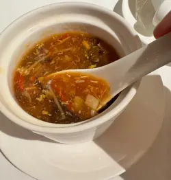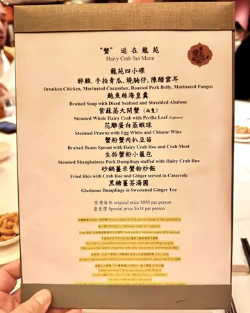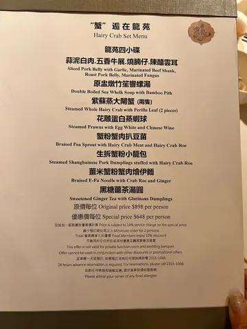 和朋友們晚飯,預訂了龍苑中菜廳。這裡環境是古色古香的中式裝修風格。享用了龍苑晚市套餐(每位$550,另收加一服務費),食物包括:蜜汁叉燒 海蜇拍青瓜典型的中式小食,叉燒肥瘦適中,蜜汁泛起光澤,味道香濃。海蜇煙韌,青瓜🥒脆身爽口。海鮮酸辣羮配料有蝦肉粒、魚肉粒及雲耳絲,酸辣味撲鼻,亦刺激味蕾,開胃提神。蒜香安格斯牛柳粒牛柳粒切得一口大小,入口軟腍,仍能鎖住肉汁。配了爽口的西芹粒,清新怡人。蝦籽油泡蝦球蝦球🍤新鮮彈牙,每一口充滿鮮味,加上有西蘭花及黃椒、紅椒作配搭,令色彩更繽紛。😊薑蔥斑球粉絲煲上菜時發出「吱吱渣渣」的聲音,蒸氣冒起,香氣撲鼻,相當吸引。斑球大件,魚肉清甜,亦炆得入味,整道菜煮得乾身。豉油皇銀芽雞肉炒麵份量極多,麵條炒得色澤均勻,幼細亦易入口,加上了雞肉絲,亦沒有太多韮菜和芽菜。美點雙輝(紅棗糕、芝麻湯丸)紅棗糕熱騰騰,甜度適中。湯丸內的黑芝麻呈流心,甜美動人。服務優質,侍應們有禮,使人賓至如歸。使用Openrice訂座有7折…查看更多