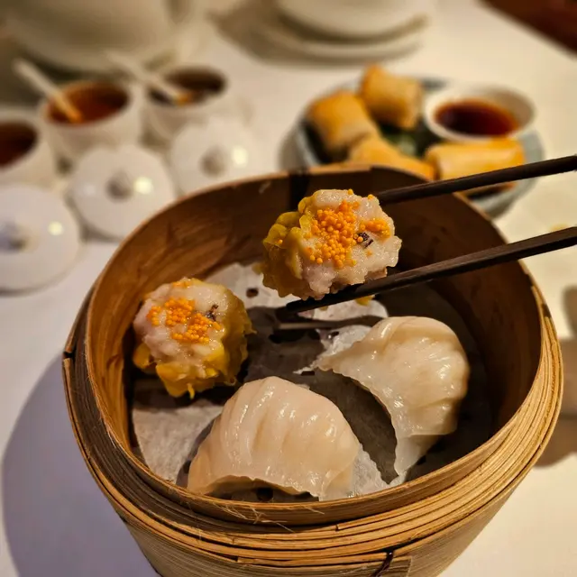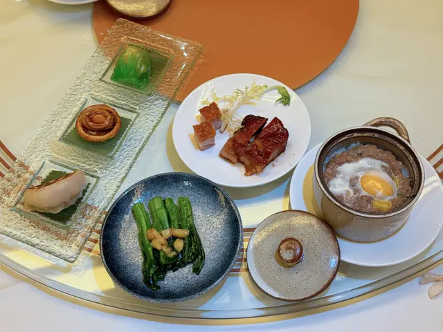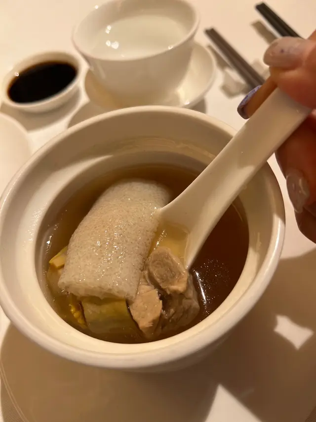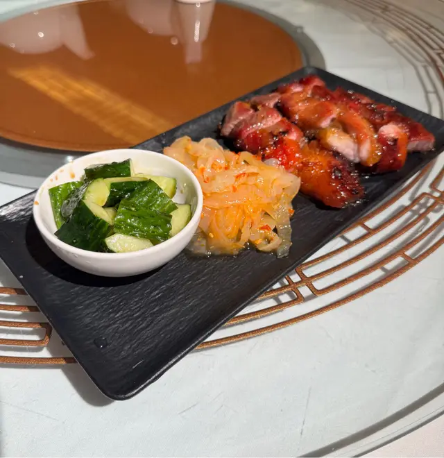 和朋友們晚飯,預訂了龍苑中菜廳。這裡環境是古色古香的中式裝修風格。享用了龍苑晚市套餐(每位$550,另收加一服務費),食物包括:蜜汁叉燒 海蜇拍青瓜典型的中式小食,叉燒肥瘦適中,蜜汁泛起光澤,味道香濃。海蜇煙韌,青瓜🥒脆身爽口。海鮮酸辣羮配料有蝦肉粒、魚肉粒及雲耳絲,酸辣味撲鼻,亦刺激味蕾,開胃提神。蒜香安格斯牛柳粒牛柳粒切得一口大小,入口軟腍,仍能鎖住肉汁。配了爽口的西芹粒,清新怡人。蝦籽油泡蝦球蝦球🍤新鮮彈牙,每一口充滿鮮味,加上有西蘭花及黃椒、紅椒作配搭,令色彩更繽紛。😊薑蔥斑球粉絲煲上菜時發出「吱吱渣渣」的聲音,蒸氣冒起,香氣撲鼻,相當吸引。斑球大件,魚肉清甜,亦炆得入味,整道菜煮得乾身。豉油皇銀芽雞肉炒麵份量極多,麵條炒得色澤均勻,幼細亦易入口,加上了雞肉絲,亦沒有太多韮菜和芽菜。美點雙輝(紅棗糕、芝麻湯丸)紅棗糕熱騰騰,甜度適中。湯丸內的黑芝麻呈流心,甜美動人。服務優質,侍應們有禮,使人賓至如歸。使用Openrice訂座有7折…查看更多