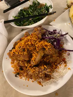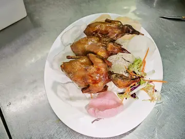 乳鴿唔係大隻,但啲肉都還可以,乳鴿皮完全唔脆都算,D皮仲要油淋淋軟身的,炸完出嚟都唔係油到咁…. 椒鹽鴿蛋嘅蛋白好少,根本用啲厚粉去炸,唔係完整一隻蛋白,杏汁豬肺湯冇杏仁味且有點酸,難飲到極,越嚟越退步,請我都唔會再去,兩個人食啲雞粥都食剩,正常杏汁豬肺湯會好飲,呢度個湯點解可以差得咁緊要,我都未試過會剩返啲湯