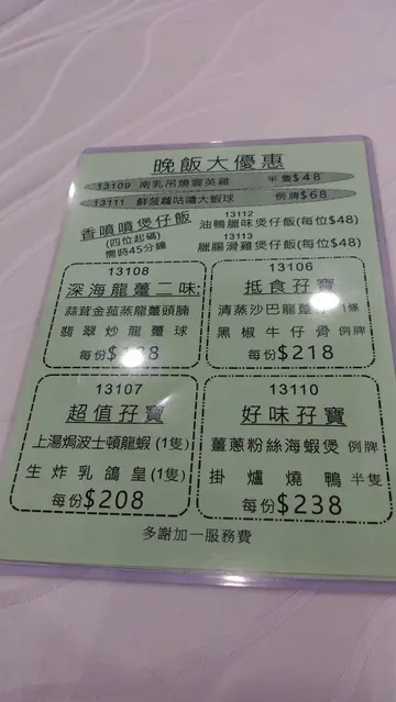 四餸一湯 晚餐 $588包括:小菜2款、海鮮1款、燒味1款、湯1款原隻鮑魚雞粒豆腐煲鮑魚好細隻,:( 放在匙羹中,可略知一二,豆腐份量不少,而且嫩滑惹味!
