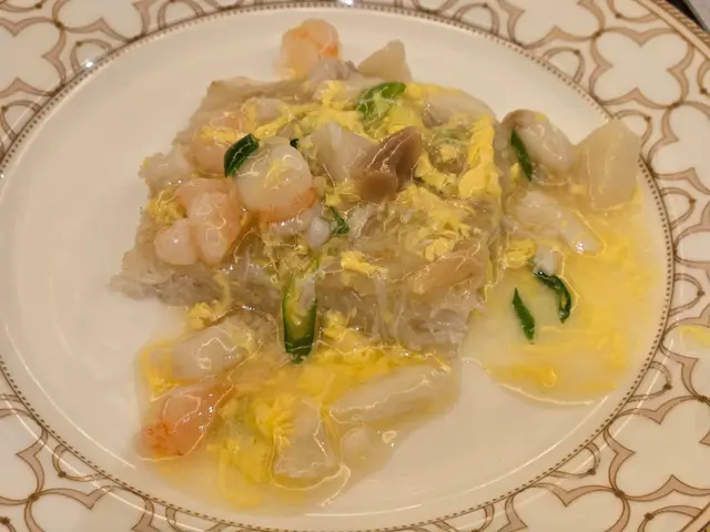 周年聚餐投票,「龍逸軒」最終勝出。餐廳裝修經典,佈置略顯陳舊。𤔡怕人多意見多,因此攪手一早已預訂了餐廳以祝壽為主題的套餐,亮點之一是贈送生日蛋糕給食客。四小碟中最喜歡五香牛腱,牛腱香軟濕潤,肉味濃郁。椒鹽蟲草花對我來說是創新小食,是第一次品嚐,蟲草花非常香脆,一點也不油膩,只是油炸之物,只可淺嘗。花膠螺頭湯非常鮮甜,花膠厚且彈牙,十分滋味。因為未能吃鴨,所以不清楚食物水準,但見鴨子油光亮麗,鴨身飽滿,且友人皆吃得津津有味,相信質素甚好。對我而言,柚皮扒鵝掌是今晚最具看頭的菜式,柚皮跟鵝掌均燜得十分入味,口感軟糯,非常合胃口。厚切的石斑球魚味不錯,且不帶殘餘魚腥,石斑皮更是充滿膠質口感,與嫩綠的菜遠十分搭配。花枝片切得非常薄,顏色近乎半透明,口感雖不至於爽彈,但也不黏牙,可惜鮮度一般,XO醬的微辣和咸香正好彌補了這缺口,蜜糖豆倒是翠綠鮮甜。龍躉頭腩的骨皮多而肉少,裹粉油炸可鎖緊水份,且令龍躉皮更有口感,只是粉皮有點厚重,影響了口味。哈哈蝦炒飯以蝦肉、櫻花蝦及蝦醬炒製而成。蝦醬的份量適中,炒飯帶蝦醬香而不過咸,只是蝦肉的鮮度一般。甜品正常水準,作為飯後的一點甜,也算合適。…查看更多