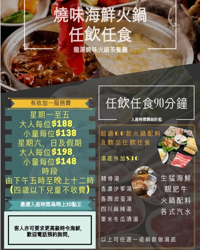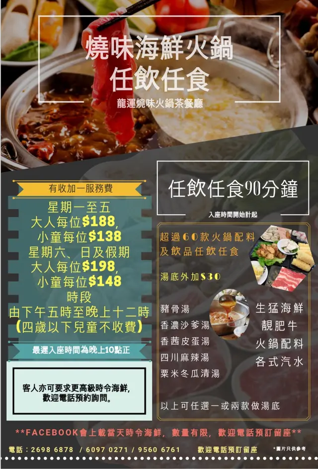 龍運燒味火鍋茶餐廳 (深水埗) 網址: https://s.openrice.com/QrbS0Ya4800 地址: 香港深水埗福華街51D號地下 電話: +852 26986878