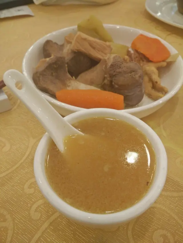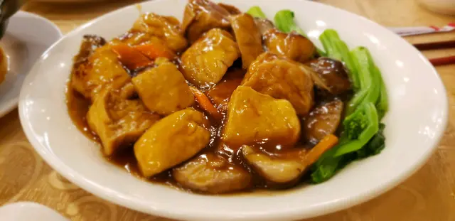 話說有親戚住彩德邨,當日本身諗住係淘大食中秋飯既我地因無法去淘大,所以選擇左親戚屋苑茶樓度食中秋。成個彩德邨只有佢呢間茶樓,所以只做附近幾個屋苑佢地都夠晒客源。門面同店內睇落都幾大、幾乾淨。當日只有中秋節餐牌,不過比其他茶樓既節日餐牌選擇算多架啦。脆皮燒腩仔個燒腩仔幾好,仲暖暖地,d皮真係好脆,好食。其實本身份量多d架,不過食左幾舊先記起要影相玫瑰豉油雞隻雞都好食,唔會太咸,不過入味。北菇紅燒豆腐中式牛仔骨海味雜菜煲比想像中多菜同粉絲,唔錯沙拉骨唔係好多舊,不過都ok南乳粗齋煲粉絲反而比個雜菜煲少,同埋勁多支竹,其他配料少豉汁蒸黃立倉上面個pat豆豉簡直咸到想死,又重味精味,食完不停叩職員加水總結黎講佢d燒味係好食,不過小菜就差小小。查看更多