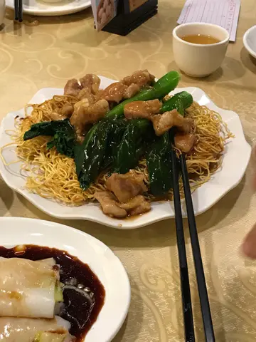 今日初到呢頭做野~早左到見未鐘又有少少餓就搵個地方急救一下肚仔先 ~~真係噢賣桔~行左几轉都搵唔到間感覺良好的地方開餐望黎望去只覺得呢到會OK D,冇咩時間再諗,就胆粗粗入去搵位坐~入到餐廳一路行都冇服務員理我,我只好自己搵張心儀的枱坐下,再搵人來開單一個人可以喺酒樓食乜野呢?!拿起張點心紙,我的選擇困難症又發作~最後決定了蝦餃燒賣同一個招牌燒鴨米線招牌燒鴨米線 - 燒鴨好味~份量都多~雖然皮已經唔脆,鴨肉好香,米線唔煮得太淋,伴菜的菜心煮得好淋~有D爛爛地的感覺...食完米線等左好耐都終於都來兩籠主角了~蝦餃燒賣 好可能真係即叫即蒸,等我好耐先黎,上枱仲係超熱出晒煙~蝦餃皮好薄睇上去好通透,可能因仲好熱的關係所以感覺好軟,一粒蝦餃饀有三隻小蝦,唔腥又彈牙,加上少少筍粒~味道配搭得好好~蟹子燒賣 - 蟹子好可能係臨尾先放上去,所以唔會溶到得返D色~燒賣饀有冬菇粒同豬肉撈埋包住,食入口好香的冬菇味~又不失豬肉的鮮味~!食飽要走的時候,都係自己靜靜地拿著咭到收銀處比錢~~總括黎講..只睇酒樓的外觀同服務員的態度,真係想像唔到佢地有個咁出色的點心師夫~ 算係我今日的意外收獲~!