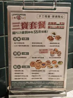 每次FD來香港玩,如果想試試香港點心,一定會推薦哩間龍點心。店鋪不止裝修得好靚,仲把點心同創意玩得好好,每次FD食完都讚不絕口。冬陰功小籠包,呢款小籠包一籠四隻,皮薄得透晒光。一啖咬落去,酸辣嘅冬陰功湯即刻爆出,香茅同豬肉balance得好好,估唔到泰式同小籠包都好夾。金牌脆皮乳鴿王,乳鴿一切二,送上臺仲熱笠笠。乳鴿皮做到好脆似層紙,撕開鴿皮,裡面肉汁暴曬出來。食落鴿胸肉嫩滑唔柴,鴿皮薄如蟬翼,一隻完全唔夠喉。港原味2.0燒賣拼盤,用一個籠屜裝埋6只唔同味道嘅燒賣,啱曬每款都想試下啲FD。香辣雞軟骨燒賣香辣惹味,芫荽馬蹄燒賣爽口彈牙,最絕啲係蘇薑馬友鹹魚燒賣,入口真係好重鹹魚香味,估唔到燒賣都可以玩出更多花樣。三寶套餐,超級抵食嘅套餐組合,選擇仲好豐富。南北杏菜膽燉豬肺,燉湯清澈見底,飲落先系白菜膽嘅清甜,然後南北杏獨特嘅堅果幽香先至浮現。豬肺處理得極乾淨,咬落似海綿咁吸滿湯精華,無半點腥氣,飲完全身都暖咗。欖角醬蒸排骨,排骨揀咗一字排部位,肥瘦均勻,用欖角醬慢火蒸到排骨好入味。食落排骨肉質軟嫩,墊底嘅芋頭嗦曬肉汁同醬香,粉嫩軟糯。酸菜肉絲雞湯面,湯底用咗老火雞湯,再落入酸菜肉絲調味。飲落先系老火雞湯嘅醇厚,跟住酸菜嘅鹹酸慢慢滲出。麵條軟硬適中,掛湯力強,嗦一啖暖到入胃,令人食到停唔落口。宮廷桂花糕,個甜品好靚,晶瑩透亮好似玫瑰花。半透明嘅糕體睇到入面星星點點嘅金桂,未食已經聞到桂花蜜嘅清雅花香。入口清甜唔膩,玫瑰香濃又帶出淡淡金桂香味,超好食。抹茶豆腐布丁,又係一款創新甜品,日式抹茶撞中式豆腐竟然零違和。布丁質地幼滑入口即化,面頭抹茶入口甘醇同布丁好夾,作為收尾黎講好圓滿。…查看更多
